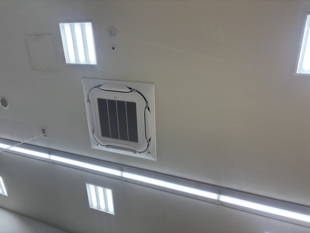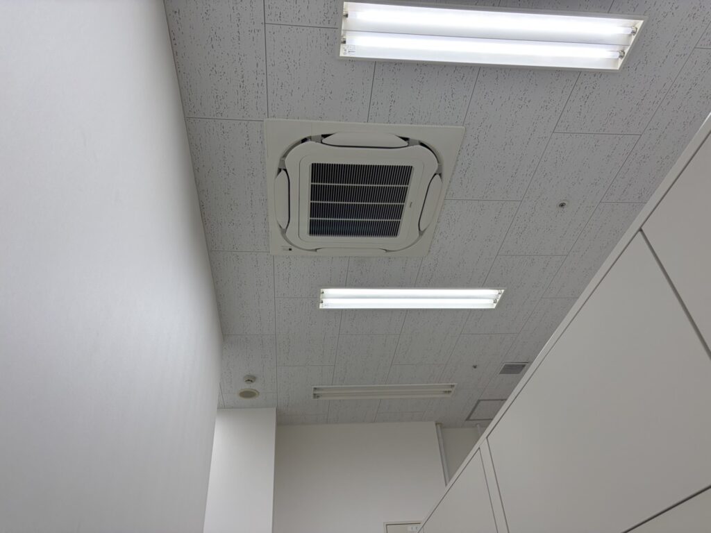 今回設置した機種は、4方向への送風により室内の温度ムラをなくし、どこにいても快適な環境を維持できる高機能モデルです。