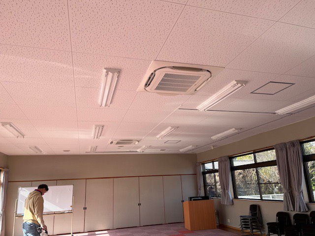 岐阜県瑞穂市内の施設にて、天井カセット形業務用エアコンの設置工事を担当させていただきました。